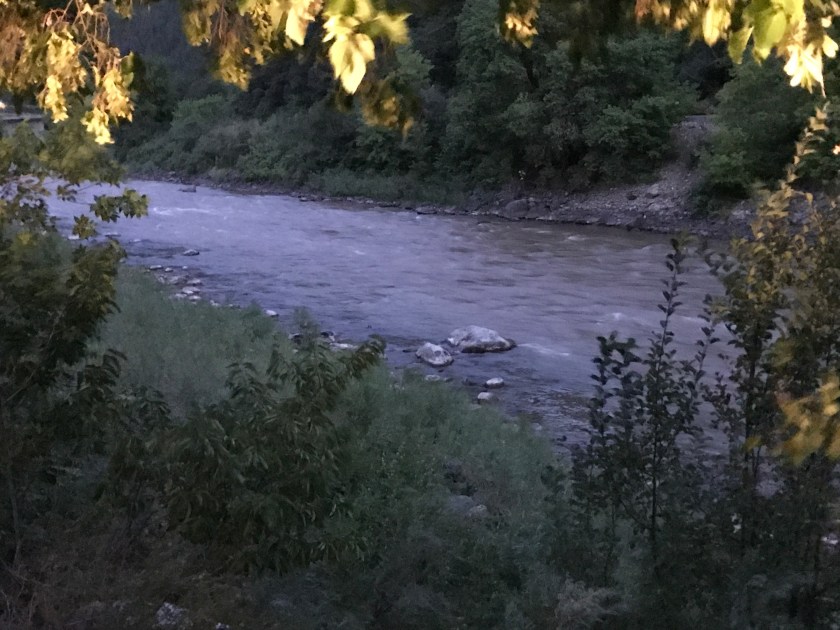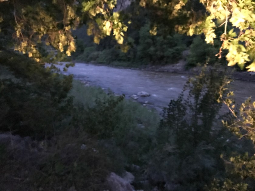 And we were off again. Unfortunately it stormed through the Rockies and we couldn’t see a thing. Strangely it rained almost every day of our trip out West. It was tough driving through the mountains on the wet and slippery roads. It dropped to 40 degrees when we were in Vail. Yikes! A bit different from the 100+ degrees we were used to living in! This last picture was from a roadside rest area near Glenwood Canyon and it’s the Colorado River. It was running high and fast and very red in places!!