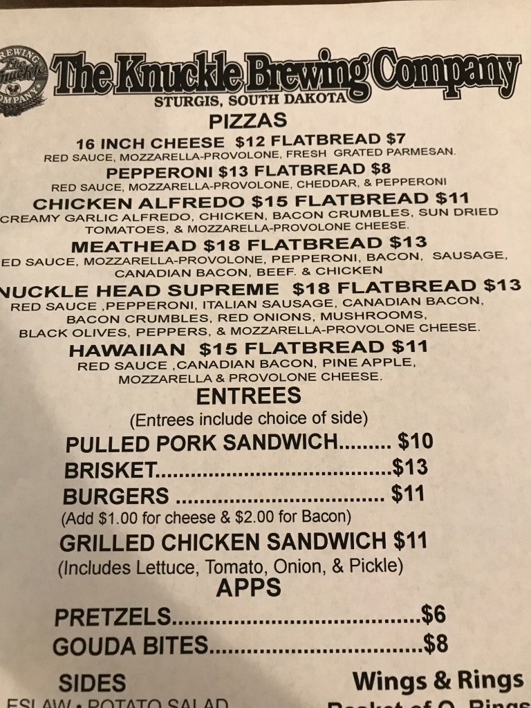 Finally we headed to Sturgis for dinner. Every year about 450,000 bikers head there for a huge festival. Skynard, Willie Nelson, ZZ Top and Billy Idol are coming this year! We stopped for dinner at Knucklehead Brewing before heading to Keystone for the night! Tomorrow is Mt. Rushmore and Crazy Horse! Joe is already asleep beside me! A great day for sure!