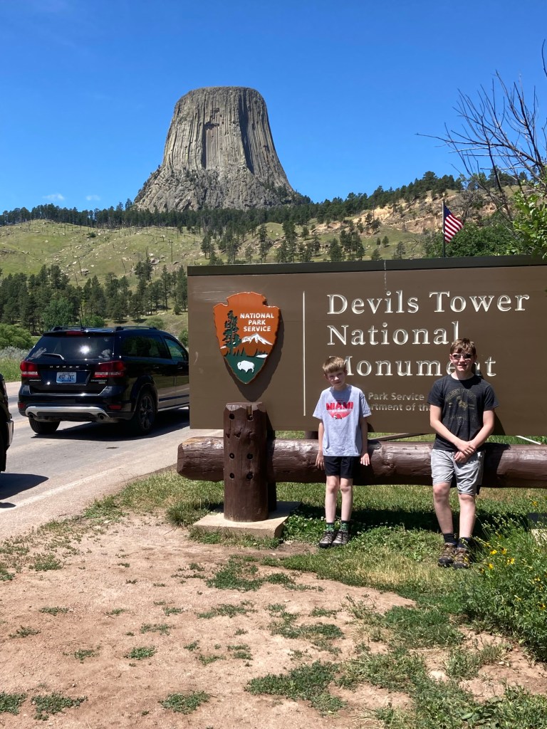 This morning we headed West for Wyoming and Devil’s Tower. It was only a 2 hour drive from Wall, but we hit it early. On the way we found a Target and an Ihop so shopping and breakfast were first in Rapid City!